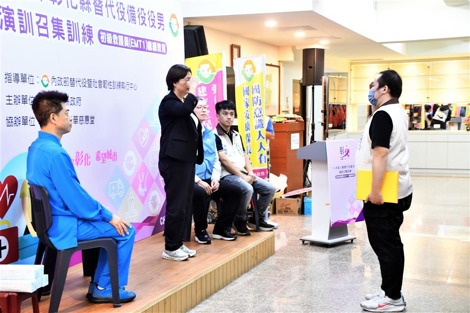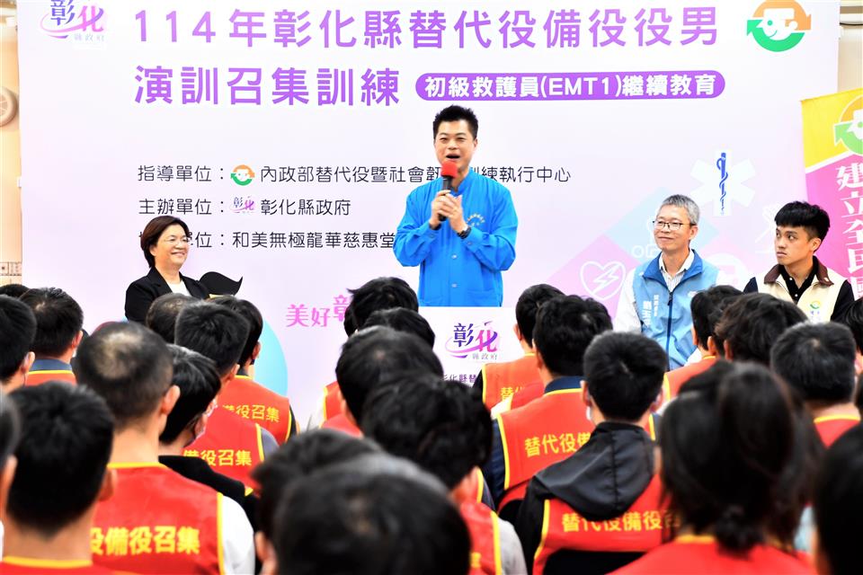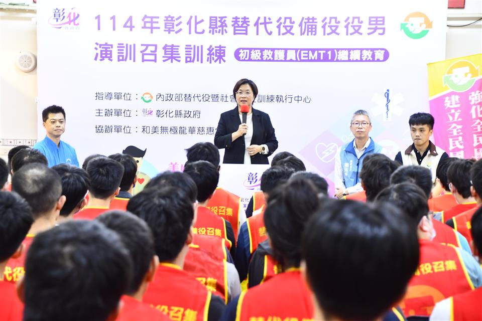 新聞焦點 逾200位替代役備役役男 參與初級救護員教育召集 強化全民國防戰力 發布日期 2025/11/04~2025/12/04 | 發佈單位: 民政處 | 發佈日期: 曹科長 7531751 | 更新日期 2025/11/04 | 瀏覽人數: 10人 《置頂》 彰化縣政府辦理114年替代役備役役男初級救護員(EMT-1) 繼續教育召集,今(4)日於和美龍華慈惠堂開訓,進行為期4天的課程,縣長王惠美出席勉勵。期盼透過強化召員救災救護能力,以最壞的打算做最好的準備,善盡保家、保鄉、守土的責任。 王縣長表示,感謝各位替代役備役役男配合政府政策,放下工作參與4天的訓練,彰顯替代役後備組織力量,為救災備援、保衛家鄉盡一份心力。另外,縣府積極打造青年友善創業環境,由青年發展處編列預算「青年創業獎勵補助1,000萬元」,只要完成30小時創業課程並撰寫提案就能申請,其中「創業圓夢類」每人最高30萬元,並設置中興莊、和興青創基地,輔導彰化青年留鄉、返鄉創業,以積極行動支持青年創業。另外,家中若有經營傳統產業,縣府近年皆於4月辦理「彰化縣地方產業創新研發SBIR計畫」,協助縣內中小企業升級轉型,單一公司最高補助經費100萬元,若有兩家廠商聯合申請,最高補助200萬元,以促進在地企業永續經營。 民政處表示,此次替代役備役役男的初級救護(EMT-1)繼續教育課程,共召訓222人,四天的訓練課程,除了有全民國防等課程外,也有救護技能的實作演練。課程結束後,替代役備役役男的EMT-1證照效期即可延長3年。 今(114)年度本縣共辦理20場次的備役演訓,並確保每梯次召訓任務能如期如質,在安全狀況下完成演訓召集任務,11月4日至7日實施替代役備役男初級救護員(EMT-1) 繼續教育召集,此次訓練感謝和美龍華慈惠堂的全力支持。縣府全力配合中央政策,積極辦理各類演訓,全面提升訓練品質成效,凝聚全民力量,共同為國家安全、社會穩定貢獻心力。 與會貴賓有彰化縣替代役備役管理中心祕書游曜綸、和美龍華慈惠堂張晉維堂主、縣府民政處長劉玉平、縣政顧問陳錫鐓、祕書莊峻承等人。
