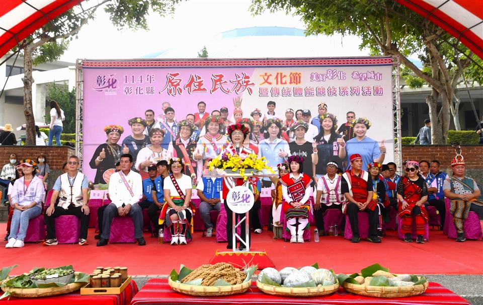 新聞焦點 彰化縣原住民族文化節暨傳統體能競技熱鬧登場 開啟多元文化嘉年華 發布日期 2025/11/08~2025/12/08 | 發佈單位: 民政處 | 發佈日期: 李科長 7223329 | 更新日期 2025/11/08 | 瀏覽人數: 23人 《置頂》 彰化縣原住民族文化節暨傳統體能競技系列活動,今(8)日在彰化縣立體育館戶外圓形廣場展開,縣長王惠美、議員陳榮妹與各族人好朋友共享文化盛宴。王縣長表示,今年是一年一度彰化縣原住民文化節暨傳統體能競技活動,彰化縣原住民有16族,人數共7,233位,期盼藉由活動鼓勵老中青三代一起動起來,也希望讓原住民朋友在彰化安居樂業過好生活。今年特別邀請彰化市平和國小合唱團演出,天籟般的優美歌聲讓全場貴賓感受到濃厚的原住民氛圍。 王縣長表示,本活動自2005年首辦以來,已邁入第20年,感謝各族長老與族人用心把各族的文化及語言在彰化向下扎根,讓更多人得以感受多元文化。今天有超過600位族人組成12個隊伍參加原住民舞蹈及體能競賽,族人為了今天的活動,從9月就開始進行長達1個月的訓練,就是希望展現最棒的成果。同時現場有超過20攤傳統手工藝、原住民美食及農產品特賣等市集,歡迎大家一起共襄盛舉。 王縣長指出,縣府致力為各族營造更好的生活環境,也感謝陳榮妹議員對縣內族人的照顧,一有問題都會立即向縣府反映。縣府積極推動原住民福利政策,從醫療健康、居住安全及就業權益,也提供完善的社福照護,期盼共同邁向「美好彰化 希望城市」的願景。 縣議員陳榮妹表示,感謝王縣長對族人朋友的用心,本縣原住民族雖人數不多,但王縣長用心照顧每一位族人朋友的需求,有越來越多的孩子與年輕朋友參與縣內活動,努力延續原住民的傳統文化。今年有12隊參加,希望未來有更多隊伍參與一年一度的原住民族文化活動。 民政處表示,每年10至11月秋高氣爽的季節,彰化縣政府號召分散在26鄉鎮市族人在圓形廣場相聚,與族人共同籌劃這場充滿傳統與歷史的文化節,就是希望帶給大家最豐富的節目。彰化擁有豐富的人文歷史及文化資源,原住民族文化節是展現原住民族文化深厚內涵的重要時刻,也是多元文化共榮的最佳例證。 今年活動首先登場是[聯合主祭]-由長老們帶領大家,以敬天、敬地、敬祖靈儀式,傳達給年輕一輩族人維繫自身文化、傳承與宣揚的使命感,啟發族人牢記和平、尊重、互助以及分享的祖訓,並祈求祖先護佑豐收。再來是[原住民歌曲表演]-由彰化市平和國小合唱團演出,這團隊以原住民族歌曲演出,無論是在國內或國外比賽都有亮眼的佳績。接續的大會舞今年共有12隊超過600人一起起舞,展現原住民優美舞蹈。最後是練習許久的[舞蹈競賽]-每隊盡全力展現最佳舞姿及合作默契,[體能競賽]是表現出體能及團隊精神最佳時機。此外,現場有超過20攤原住民市集,有傳統手工藝、原住民美食及農產品特賣,歡迎大家一起來參加,感受最豐富多元的原住民文化。 與會貴賓還立委謝衣鳯、平地原住民立委黃仁、縣議員陳榮妹、立委黃秀芳服務團隊、山地原住民立委盧縣一服務團隊、平地原住民立委陳瑩服務團隊、副議長許原龍服務團隊、屏東縣滿州鄉長古榮福、屏東縣滿洲鄉民代表會秘書劉碧真、彰化縣原住民不打散民族成長協會理事長林芝甄、彰化縣夷娜原住民文化舞蹈工作室負責人潘梅花、彰化縣原住民族語言推廣協會理事長王春琴、阿美族長老高春花、泰雅族長老潘福來、林芝甄、布農族長老金光華、縣府民政處長劉玉平、副處長陳俊南、各族代表、各級民意代表與地方仕紳等。