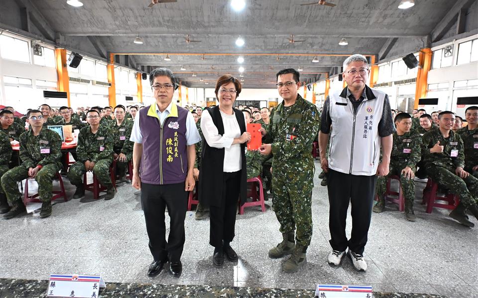 新聞焦點 台南官田營區探視彰化子弟兵 勉勵自我精進 持續提升 發布日期 2026/03/26~2026/04/26 | 發佈單位: 民政處 | 發佈日期: 胡代理科長 7531737 | 更新日期 2026/03/26 | 瀏覽人數: 27人 彰化縣長王惠美關心彰化子弟兵,今(26)日下午由縣府民政處副處長陳俊南和彰化軍人服務站專員潘道生等人陪同,前往台南官田營區探視陸軍第255梯次的縣籍子弟兵,受到營區長官及受訓役男熱烈歡迎。王縣長致贈加菜金及每人一份速食餐點,並以縣長媽媽的口吻叮囑役男把握服役期間鍛鍊身心、立定志向,同時保重身體,期許快樂當兵,平安退伍。 王縣長提醒役男,第一點,千萬不要因為好奇心作祟而嘗試毒品,否則一失足成千古恨,毀掉自身前途也會拖累家人。第二點,要有理財規劃,你不理財,財不理你,積累成多可於必要時使用。第三點,金錢關係要清楚,有借貸就要歸還,避免發生信用問題。第四點,節制刷卡消費,量力而為,不要超過個人負擔而積欠卡債。第五點,希望大家能把握服役時間鍛練身體,培養良好生活習慣,同時自我精進,提升競爭力。 王縣長指出,退役後將面臨就業或是升學的選擇,縣府每年有6場大型就業博覽會,加上200多場中小型就業媒合,輔導青年考取專業證照,提升自身技能,歡迎大家善加運用。另外縣府也以積極行動支持青年創業,只要完成30小時創業課程並撰寫提案就能申請,其中「創業圓夢類」每人最高補助金提高到50萬元,同時開辦青年圓夢創業學堂、網路新經濟就創業輔導學堂、彰農學堂等多元創業課程,並陸續設置和興青創基地、中興莊、圓林園青創基地,輔導彰化青年留鄉、返鄉創業,協助彰化青年在創業路上穩步成長,在熟悉的故鄉打造安居樂業的幸福未來。 另外,家中若有經營傳統產業,縣府每年4月都會辦理「彰化縣地方產業創新研發SBIR計畫」,協助縣內中小企業升級轉型,單一公司最高補助經費100萬元,若有兩家廠商聯合申請,最高補助200萬元,促進在地企業永續經營。縣府近年積極推動彰交特定區,未來包括新縣政中心、大巨蛋和產業園區都將逐步落成,後續將連結和美交流道、員林交流道、北斗交流道,希望將彰化打開。透過全方位協助,期盼讓更多青年返鄉發展與創業,共同為最愛的家鄉打拚。 王縣長最後也以兩則富有寓意的故事勉勵役男,人生旅途難免遇到挫折,要相信自己是最棒的,不要怕遇到困難,重要的是要如何解決問題。凡事都要以正面、積極的態度思考,只要轉個念頭,開啟不同心境,生活就會有不一樣的改變。