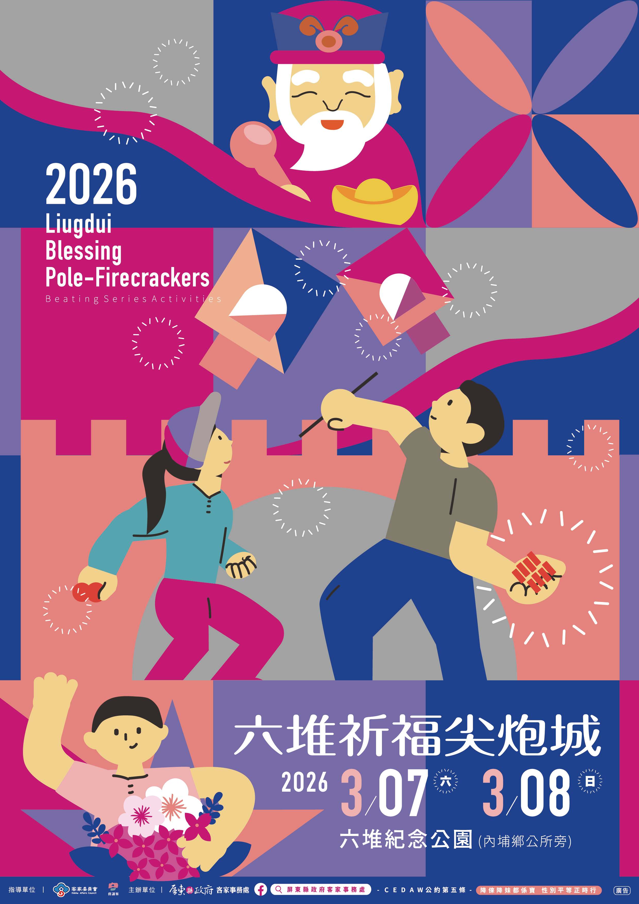 運動賽事 屏東縣政府訂於115年3月7日-3月8日辦理「2026六堆祈福尖炮城」,歡迎踴躍參加~ 發布日期 2026/02/02~2026/03/02 | 發佈單位: 民政處原住民暨民族事務科 | 發佈日期: 賴先生 047223329 | 更新日期 2026/02/02 | 瀏覽人數: 91人 一、「攻炮城」客語叫「尖炮城」,在客家傳統民俗活動中,是一項很特殊的活動,這項活動不但需靠隊員們的團結,更要有膽識、機智、勇氣與力量的結合,透過尖炮城這項活動可以回溯到先民之義勇精神,故將之發揚光大。 二、相關報名事宜及內容請詳「2026 六堆祈福尖炮城活動賽事規則」。